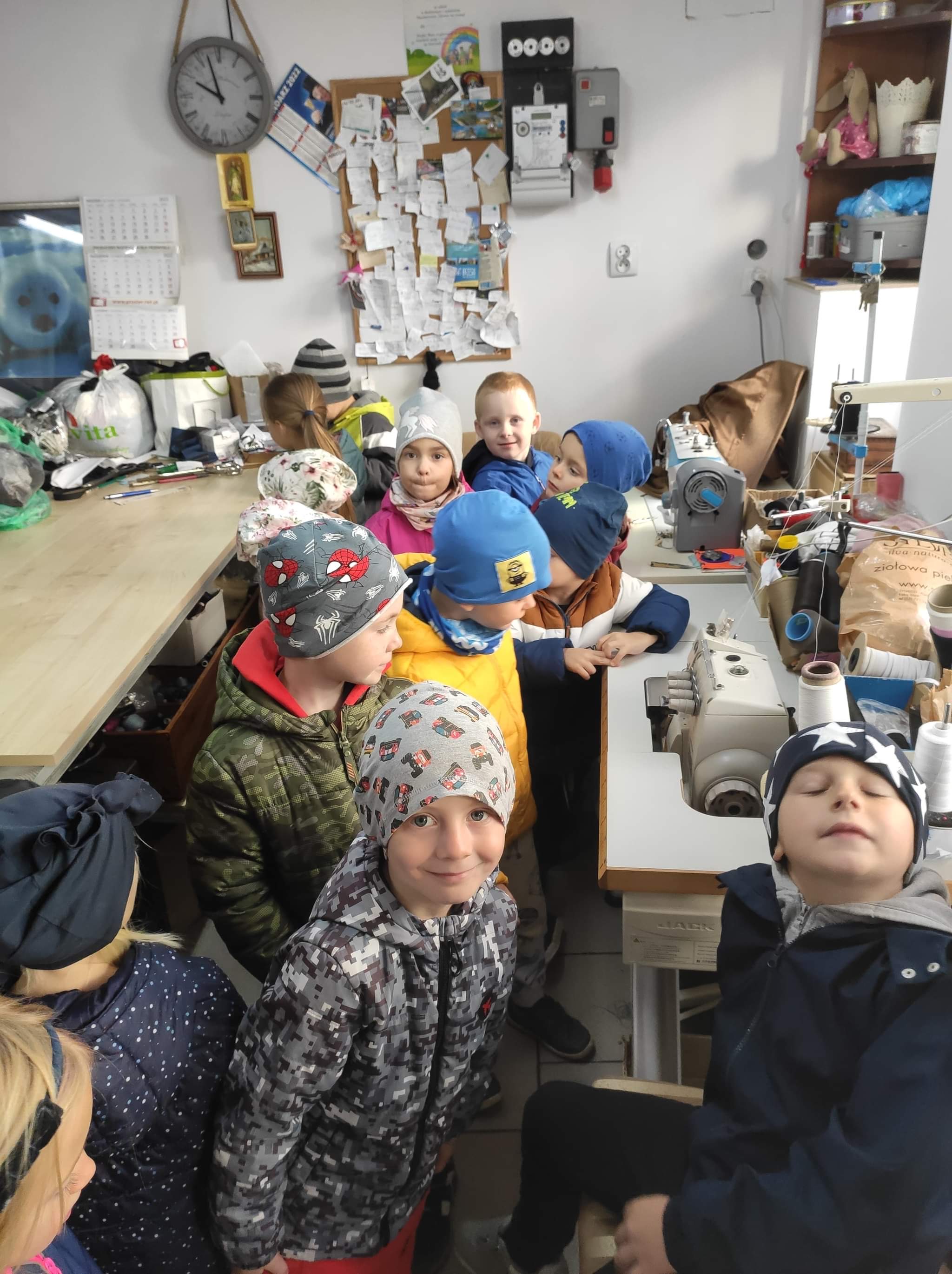 20 października dzieci z naszego przedszkola udały się do zakładu krawieckiego „Szpulka”. Celem naszego wyjścia było poznanie zawodu krawca oraz jego specyfiki. Przedszkolaki miały możliwość zobaczenie maszyn do szycia, różnych narzędzi oraz przyborów, które wykorzystywane są przez krawców. Udział w zajęciach był okazją do rozmowy z życzliwą Panią krawcową, która chętnie odpowiadała na pytania. Na koniec naszej wizyty dzieci otrzymały w prezencie guziki, które będą wykorzystywane na zajęciach.